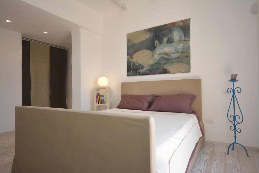 The house is surrounded by a vast olive grove of around 6000 sq.mt., enclosed by the typical dry-stone walls, sprinkled here and there with century-old carob trees, fig trees and “fichi d’India”, on a series of terraced levels gently sloping towards the sea. The interiors are spacious both in the living and in the sleeping areas, dominated by the white color, with hints of grey and green.
