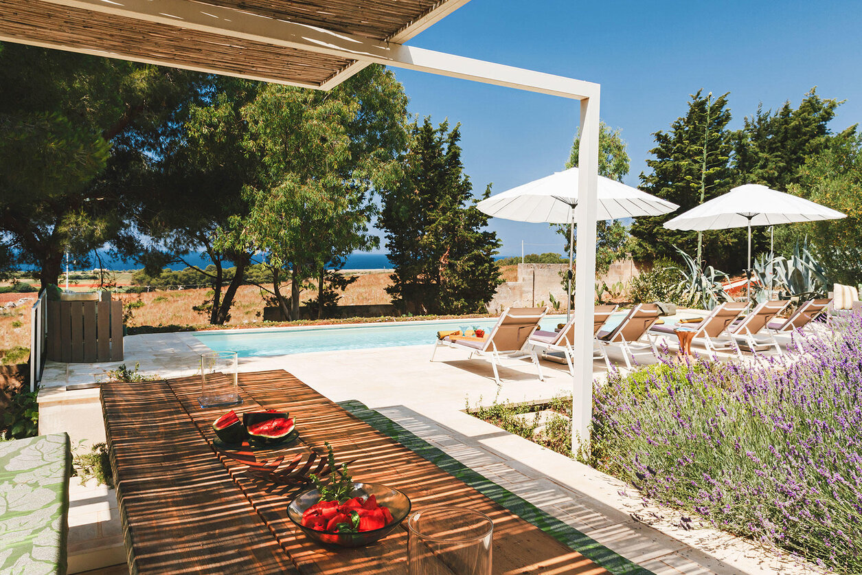 Villa Athena Gagliano del Capo 10 pax   5 bathrooms 3 double bedrooms, 2 double/twin bedrooms; 5 bathrooms + 1 toilet CIS: LE07502891000024429; CIN: IT075028C200063079 Villa Athena is an exquisite modern villa with garden and an inner courtyard with pool, located in Gagliano del Capo, a little town of the lower Salento, the southernmost tip of Puglia, only a few... See more
