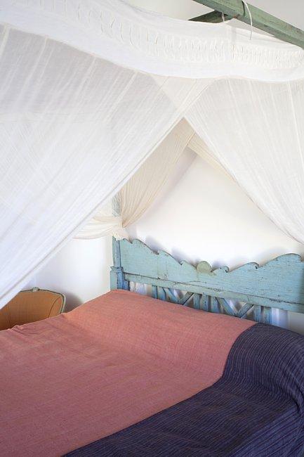 Partie A: très belle chambre double (A1) avec plafond en bois, lit à baldaquin en pierre, lit superposé, salle de bain/douche en usage exclusif et accès au jardin.